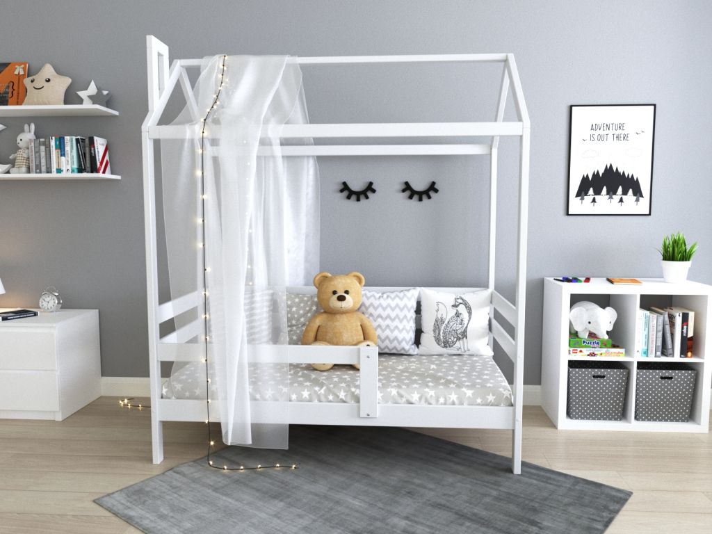 Кровать 90*180 "Эко-9" Домик с бортом Белый, (с поролоновым матрацем) Россия |