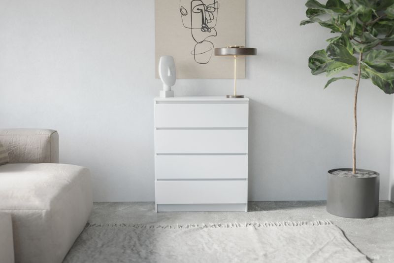Денвер, Комод 4Я, Дуб Золотой/Белый Шагрень, СВ Мебель |