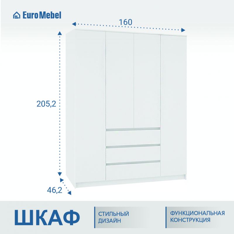 | Описание: | Глубина: 462 мм Высота: 2052 мм Ширина: 1600 мм Цвет: Белый шагрень Материал: ЛДСП Число дверей: 4 Количество ящиков: 2 Количество полок: 4 |