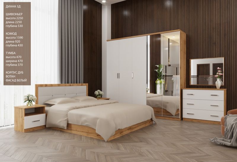 | Описание: | Спальный гарнитур представляет собой тщательно продуманную комбинацию предметов мебели, созданную для обеспечения максимального комфорта и функциональности в спальне. Кровать:950*2050*1650 (Матрас 160*200) Шкаф: 2250 х 2250 х 530 мм Тумба:470*470*370 Комод:1590*920*430 Основной материал: ЛДСП Комплектация: зеркало, комод, тумба прикроватная, шкаф, кровать Матрас в комплекте: нет Цвет: дуб вотан/белый Тонн/текстура поверхности: однотонный Страна: Казахстан |