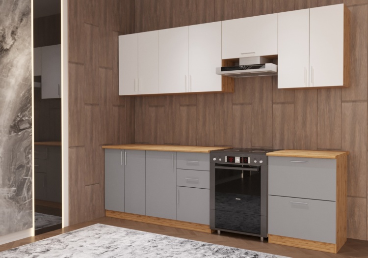 Кухонный гарнитур Рояль 2.6 м, Белый/Серый, Грандмикс |
