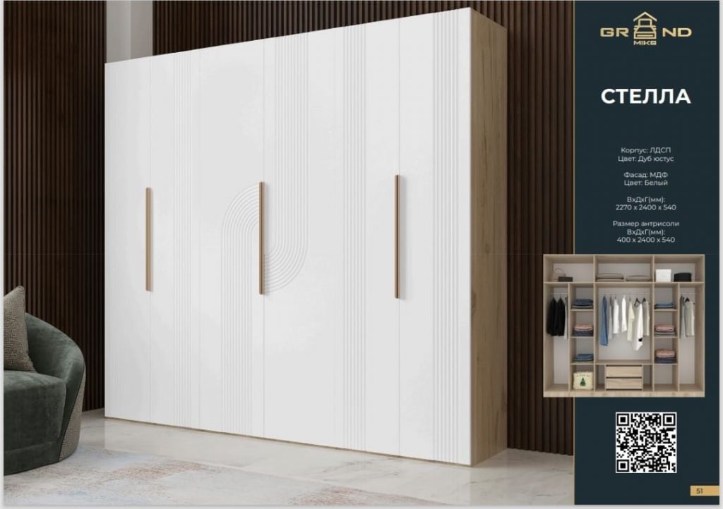 Шкаф "Стелла 4Д", Белый, Грандмикс |