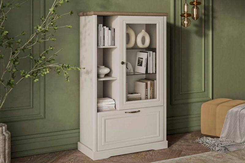 Шкаф с витриной "Тоскана" 1V1D1S, Персидский жемчуг/Каньон, Анрэкс |