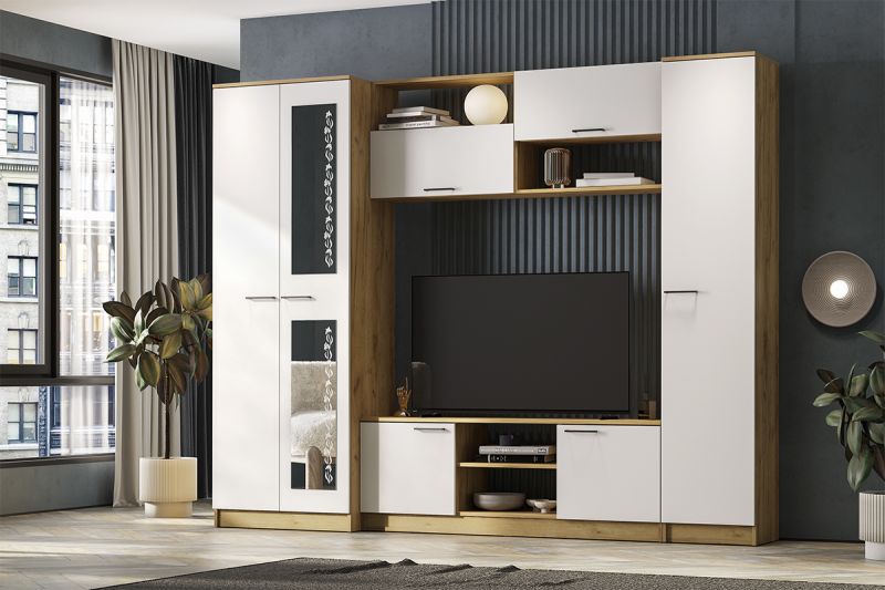 Гостиная "МГС 9" Дуб Золотой/Белый Шагрень, СВ Мебель |
