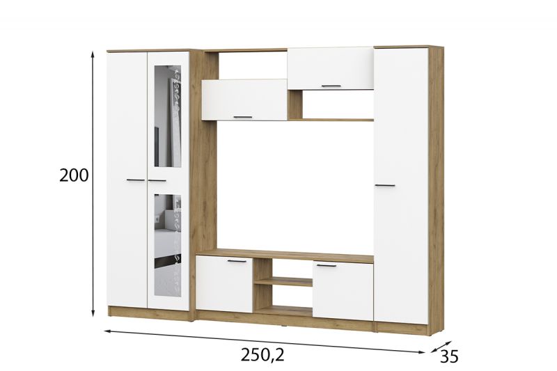 | Описание: | Вес: 129.02 кг Глубина: 350 мм Высота: 2000 мм Ширина: 2502 мм Материал: ЛДСП Цвет: Дуб Золотой/Белый Шагрень |