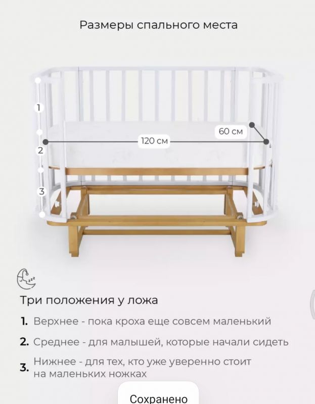 | Описание: | Тип: манеж-кровать Материал: дерево Качание: поперечный маятниковый механизм Передняя стенка: съемная Колеса:Нет Размер: 128 x 68 x 95 см Размер спального места: 60х120 Рекомендуемый возраст: от 0 до 24 мес. Вес: 20.0 кг Цвет: белый Страна: Россия |