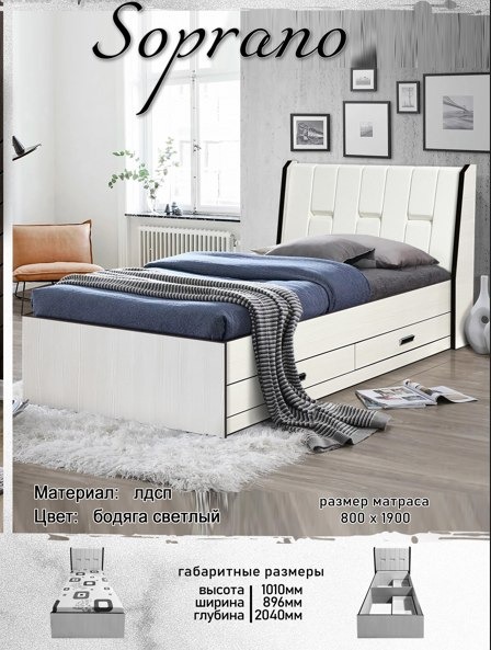 | Описание: | Спальное место: 800×1900. Цвет: Бодяга - светлый. В комплекте паралоновый матрас. Размеры (см): ширина 89,6 x высота 101 x глубина 204 |