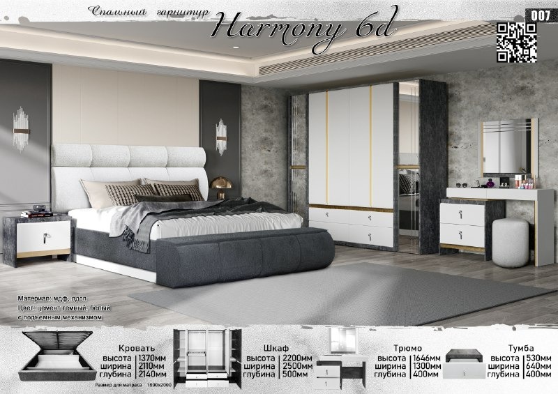 | Описание: | Материал: Лдсп Цвет:Цемент темный, белый Кровать с подъемным механизмом Размер спального места: 1800×2000 Ширина:211 Высота:137 Глубина:214 Шкаф Ширина:250 Высота:220 Глубина:50 Трюмо Ширина:130 Высота:164,6 Глубина:40 Тумба Ширина:64 Высота:53 Глубина:40 |
