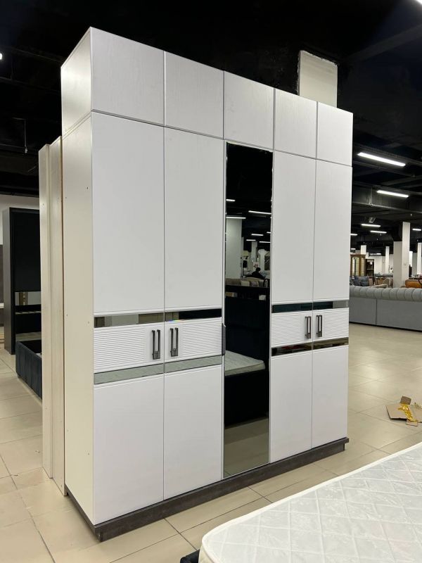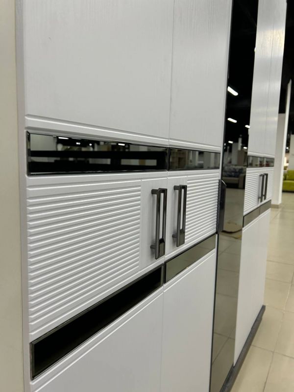 | Описание: | Лаконичные формы, гармония симметрии и эффектный акцент — круглый рельефный декор с золотыми ручками придаёт шкафу особый характер. Зеркальная центральная часть не только визуально расширяет пространство, но и делает гарнитур ещё более практичным. Материал: МДФ/ЛДСП. Размер: 2м. Высота - 2562мм. Ширина - 2000мм. Глубина - 535мм. Цвет: Белый, цемент тёмный. |