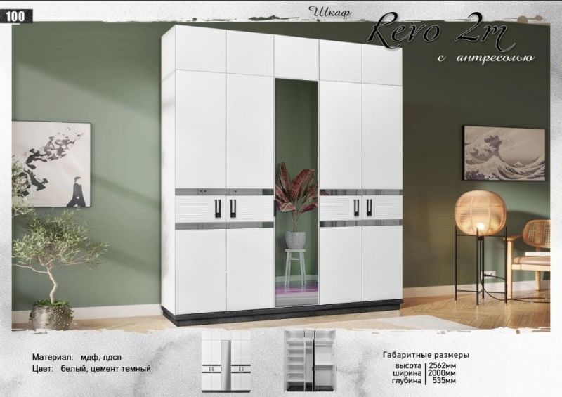 Шкаф "Рево" 5Д Белый/Цемент темный, Elegant |