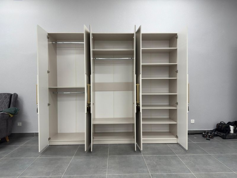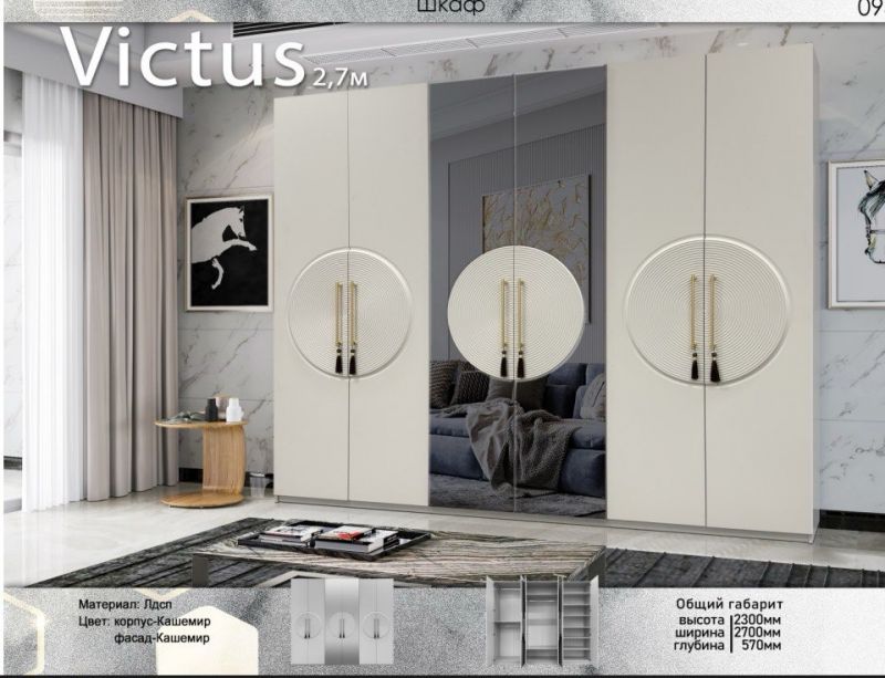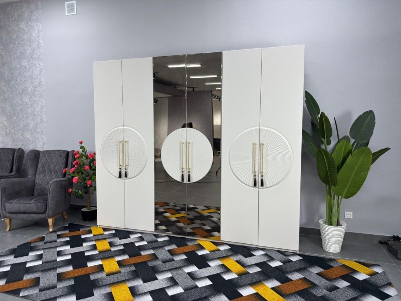 | Описание: | Лаконичные формы, гармония симметрии и эффектный акцент — круглый рельефный декор с золотыми ручками придаёт шкафу особый характер. Зеркальная центральная часть не только визуально расширяет пространство, но и делает гарнитур ещё более практичным. Высота: 2300 мм Ширина: 2700 мм Глубина: 570 мм Материал: ЛДСП Цвет: Кашемир (корпус и фасад — в едином оттенке) |