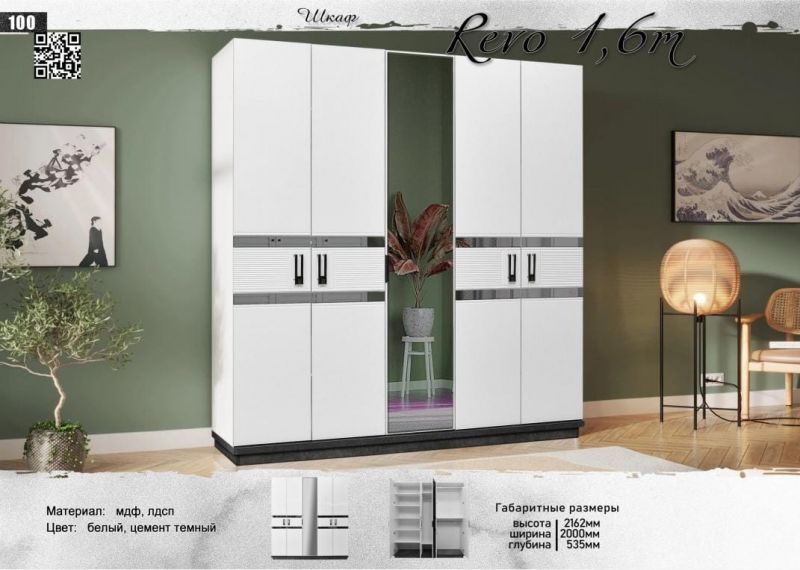 Шкаф с Антресолью "Рево" (Revo) 5Д Белый/Цемент темный, Elegant |