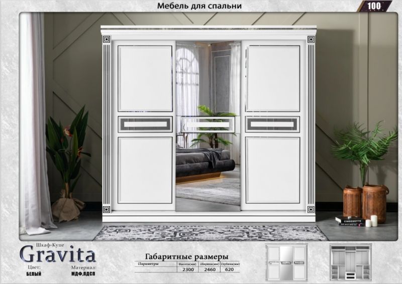Шкаф-купе "Гравита" 1,7 м белый, Elegant |