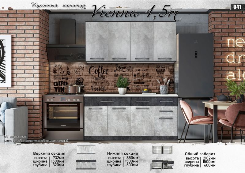 Кухонный гарнитур "Виенна" 2 м Белый/Серый, Elegant |