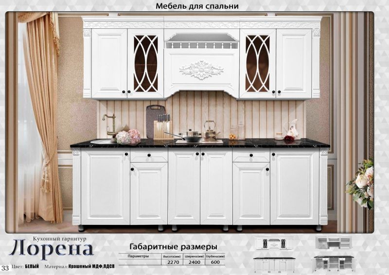 Кухонный гарнитур "Лорена" 3,2 Белый Elegant |