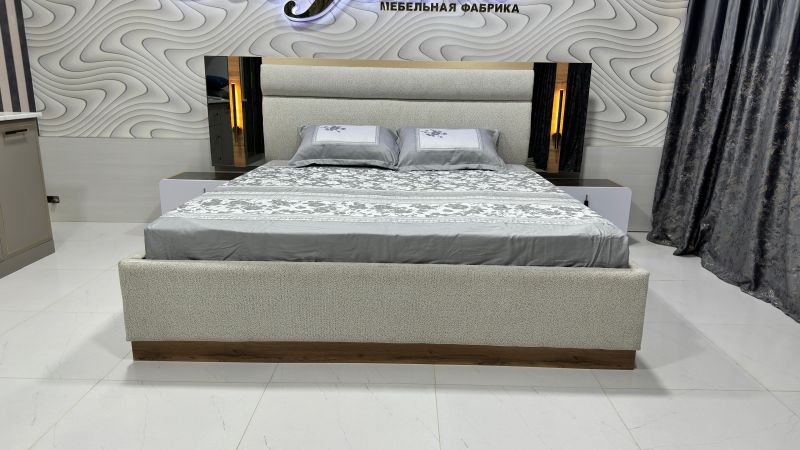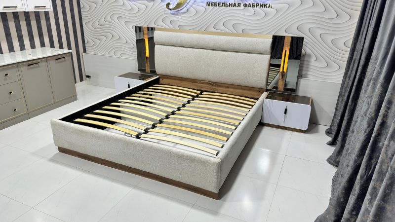 | Описание: | Кровать: Высота: 1210 мм. Ширина: 2670 мм. Глубина: 2140 мм. Тумба: Высота: 410 мм. Ширина: 600 мм. Глубина: 400 мм. Размер спального места: 1800×2000. Тумбы материал: МДФ,ЛДСП. С зеркальной подсветкой. Спинка кровати мягкая, Ткань из Рогожки. С подъемным механизмом. Без матраца. |