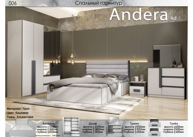 | Описание: | Материал: Лдсп. Цвет: Кашемир. Ткань: Алькантара 1.Кровать Высота:1200 Ширина:1682 Глубина: 2036 2.Шкаф Высота:2200 Ширина:1800 Глубина: 550 3.Трюмо Высота:1550 Ширина:1032 Глубина: 450 Тумба Высота:400 Ширина:500 Глубина: 400 Размер спального места: 1600×2000 |