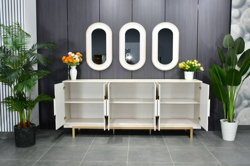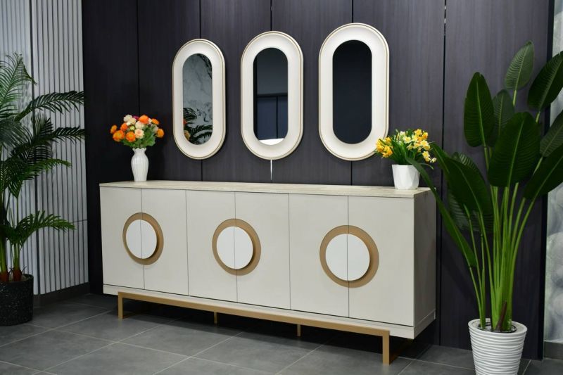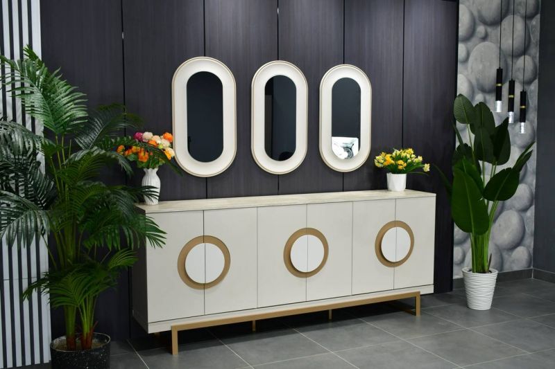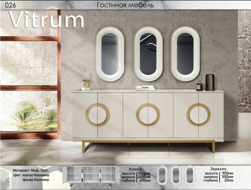 | Описание: | Современный стиль в изысканном исполнении. Комод в трендовом цвете Кашемир с золотыми акцентами и фирменными круглыми ручками — элегантный центр вашей гостиной. Комплект дополняют три овальных зеркала с тонкой золотой рамкой — визуально расширяют пространство и добавляют глубины. Комод – 2400×490×1000 мм Зеркало – 500×20×900 мм |