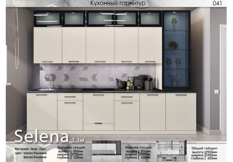 | Описание: | Общие габариты: Высота - 2550 мм Ширина - 3300 мм Глубина- 600мм Верхняя секция: Высота - 1100 мм Ширина - 2700 мм Глубина- 320мм Нижняя секция: Высота - 850 мм Ширина - 3300 мм Глубина- 600мм Материал - ЛДСП, МДФ Цвет - Корпус Кашемир Фасад - Кашемир |